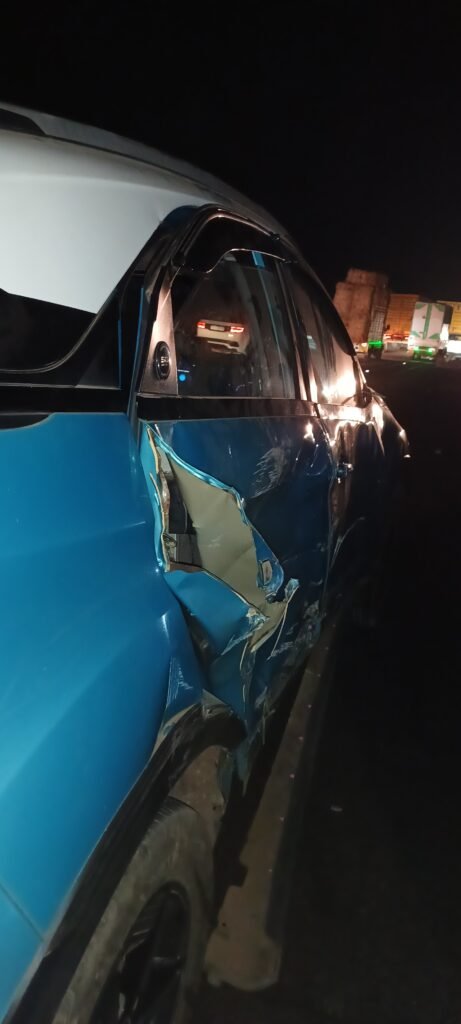 प्रत्यक्षदर्शी के अनुसार, ट्रक ने बिना पर्याप्त जगह और संकेत दिए अचानक कट मार दिया। इससे मेरी कार ट्रक के बॉडी हिस्से में बुरी तरह फंस गई। टक्कर इतनी तेज थी कि कार का पूरा साइड हिस्सा बुरी तरह क्षतिग्रस्त हो गया। दरवाजे अंदर की ओर दब गए, शीशे टूट गए और वाहन का संतुलन बिगड़ गया। कुछ क्षणों के लिए ऐसा लगा मानो सब कुछ थम गया हो।